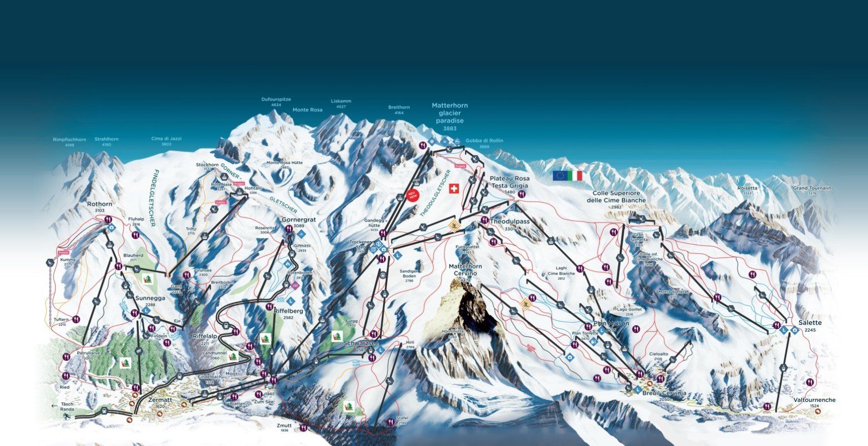 Snowtimes - Spezialist für günstigen Skiurlaub in Valtournenche 2025: Buchen Sie Ihren Skiurlaub in Valtournenche (Italien) jetzt zum Bestpreis mit Unterkunft inkl. Skipass für unter (Preis demn. verfügbar) €