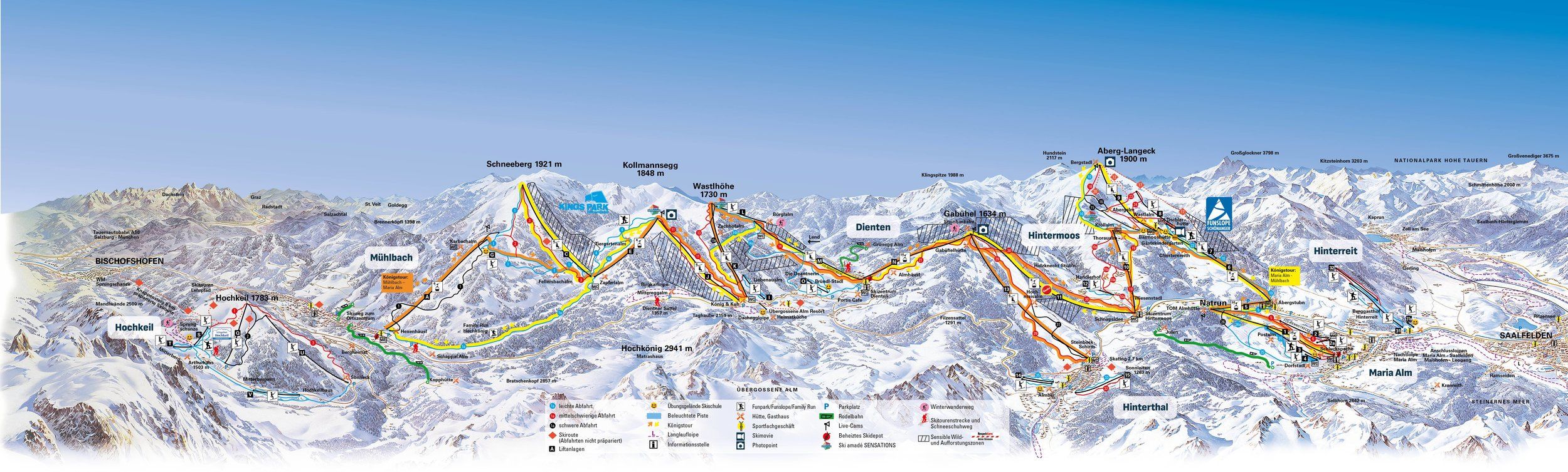 Die "Wildkogel-Arena", zwischen Kitzbüheler Alpen und dem Tauernkamm gelegen, bietet Skifahrern und Snowboarde