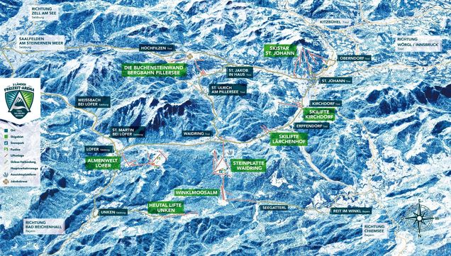 Die "Wildkogel-Arena", zwischen Kitzbüheler Alpen und dem Tauernkamm gelegen, bietet Skifahrern und Snowboarde