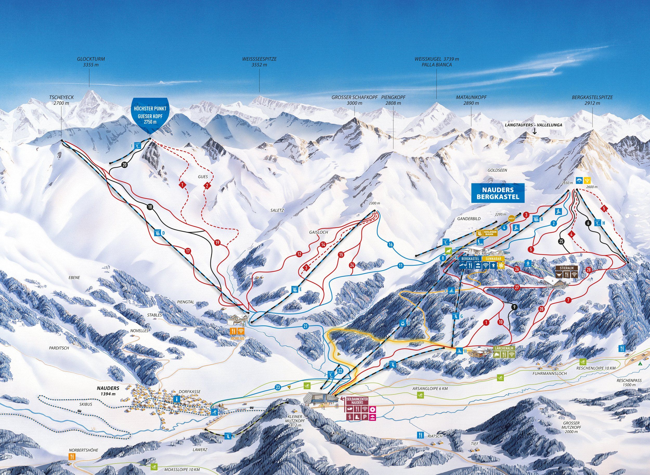 Die komfortablen Hotels liegen alle in der Gemeinde Nauders. Das Skigebiet Nauders erreichen Sie nach maximal 1,5 km, eine Skibushaltestelle