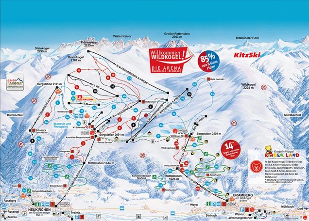 Die "Wildkogel-Arena", zwischen Kitzbüheler Alpen und dem Tauernkamm gelegen, bietet Skifahrern und Snowboarde