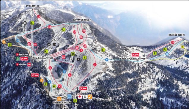 Das gemütliche 3-Sterne-Hotel Krvavec befindet sich direkt im Skigebiet Krvavec, sodass bei guter Schneelage die Abfahrt direkt bis zur Haus